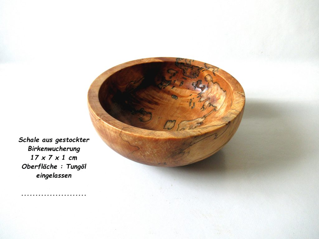 Schale aus stark gestockter Birkenwucherung , 4 x mit Tungöl von DICTUM eingelassen