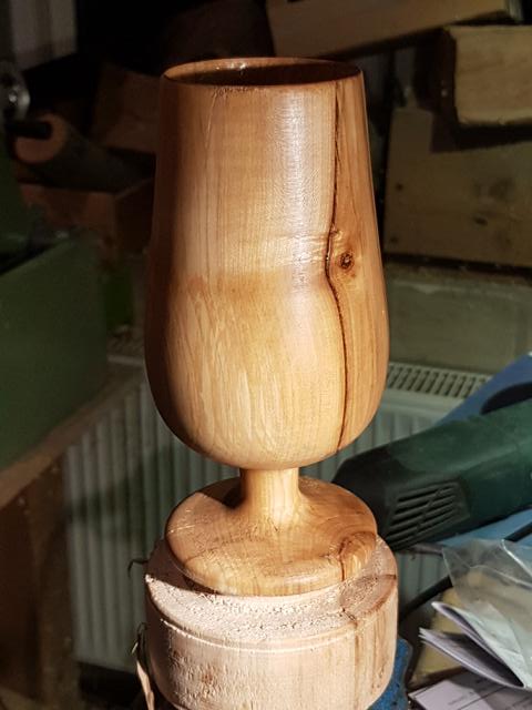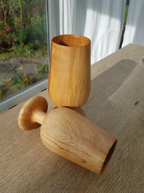Für dieses Projekt wurde bereits sehr trockenes Ahornholz verwendet, sodass sich die relativ dünnen Holzgläser nach dem Drechseln nicht weiter verzogen haben.
