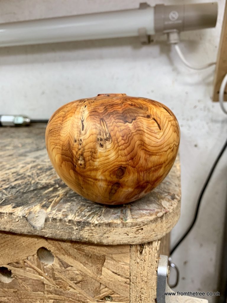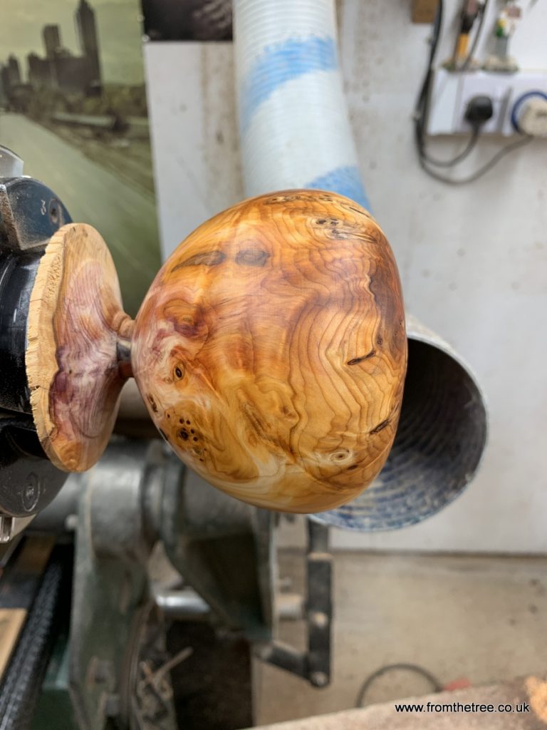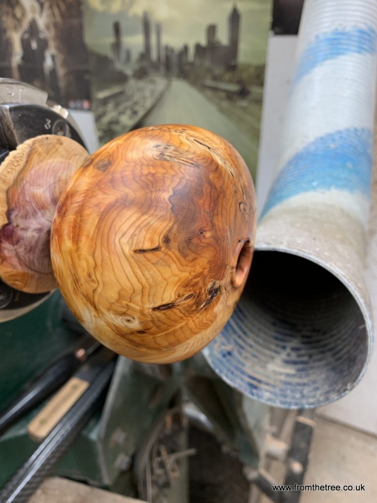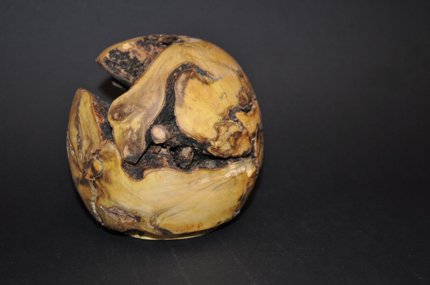 Kugel aus gestockter Birkenwucherung 13 cm Durchmesser 4 x mit Tungöl von DICTUM eingelassen