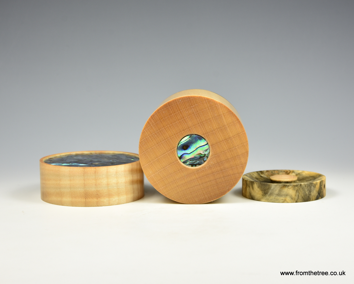 Auf den Bildern sind zu sehen die Holzkombinationen: Nussbaum / Eiche und Nussbaum / Esche.