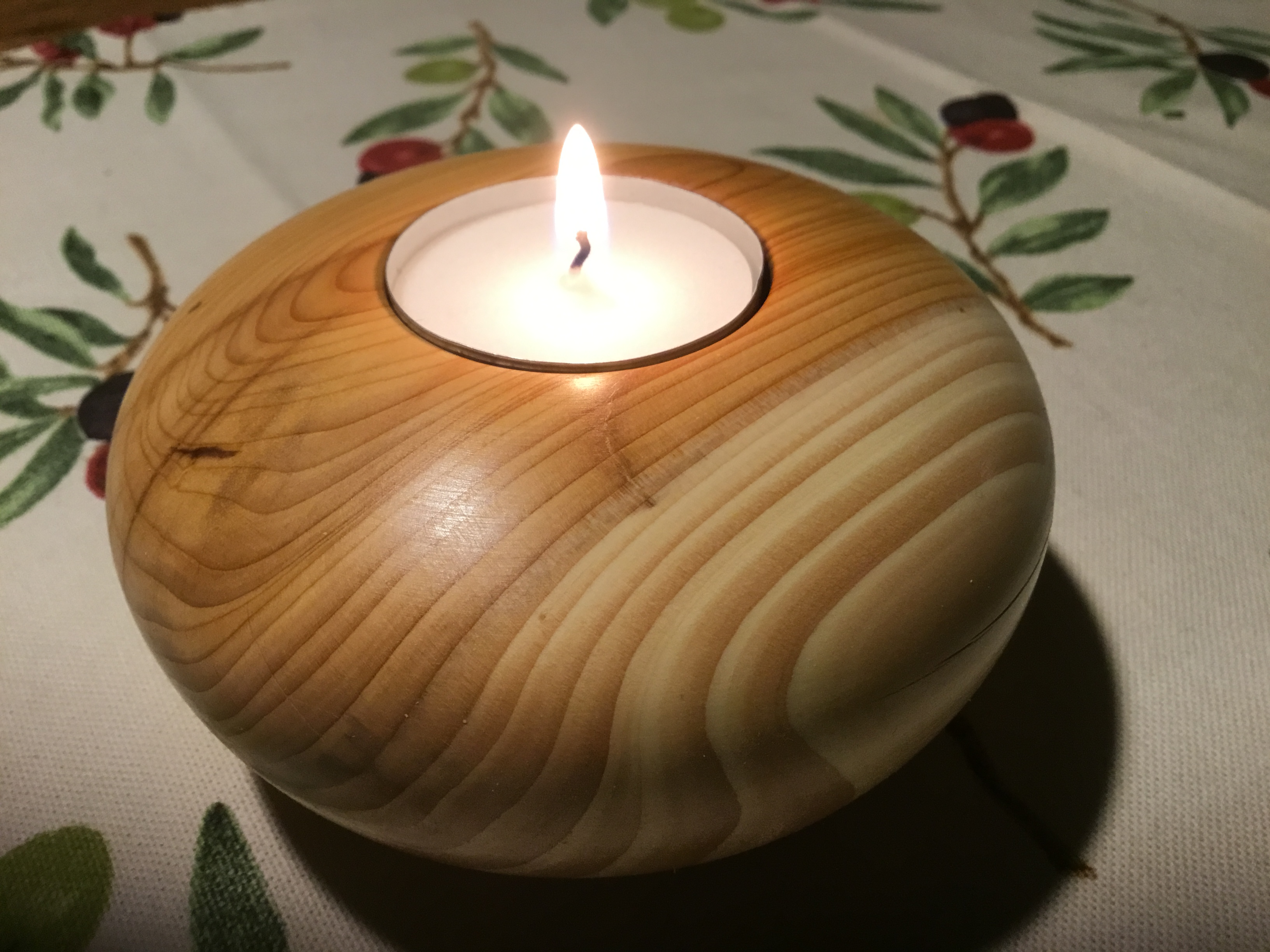 Der Teelichthalter wurde aus Eibenholz gedrechselt.Die Oberfläche wurde anschließend mit Danish Öl bearbeitet