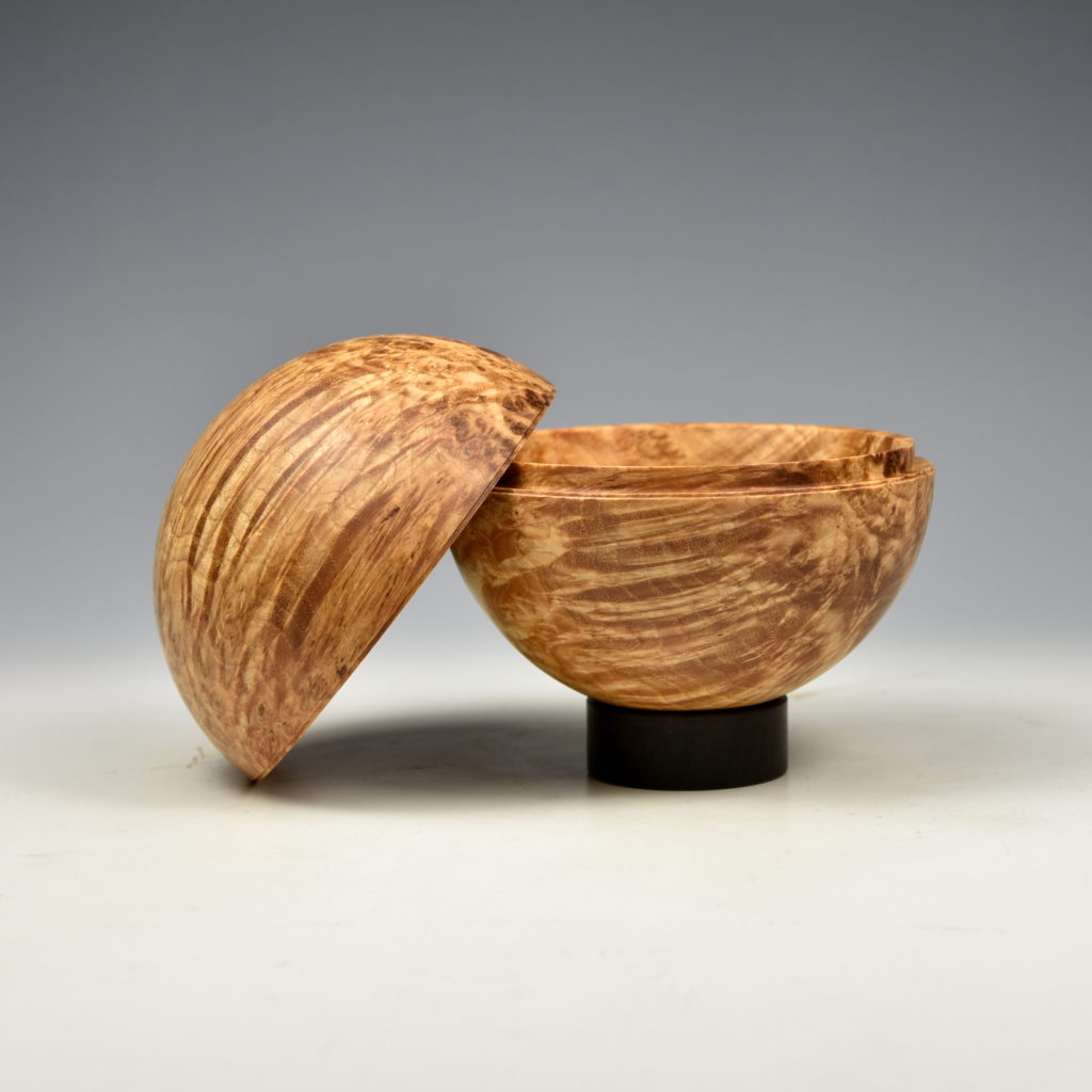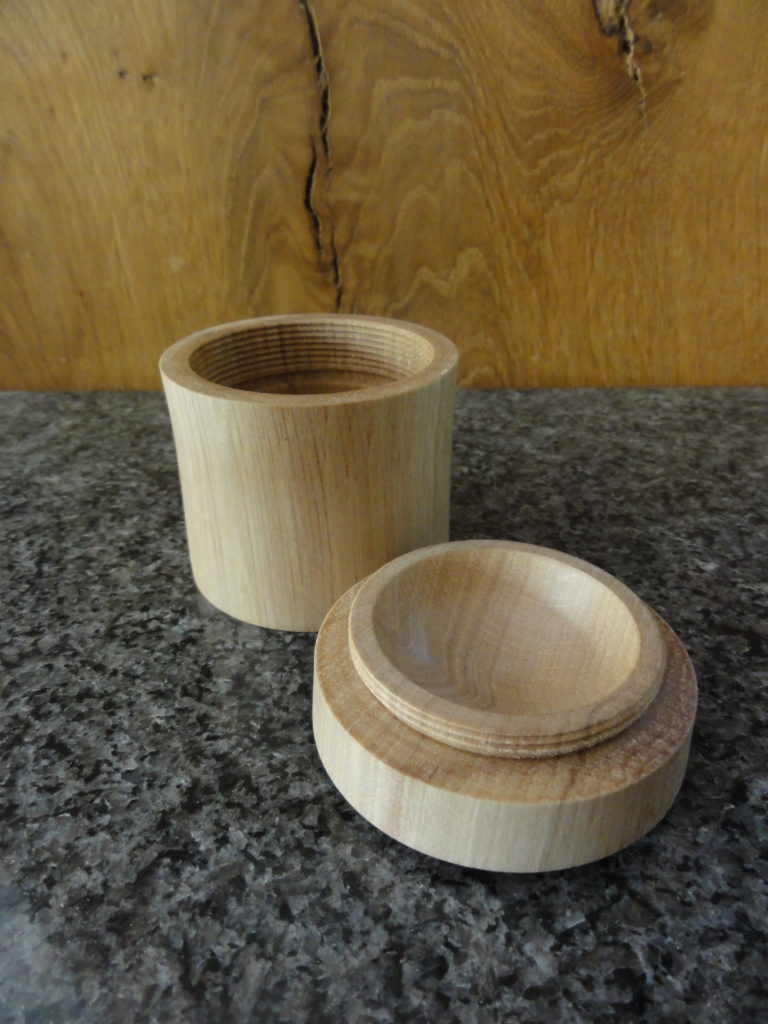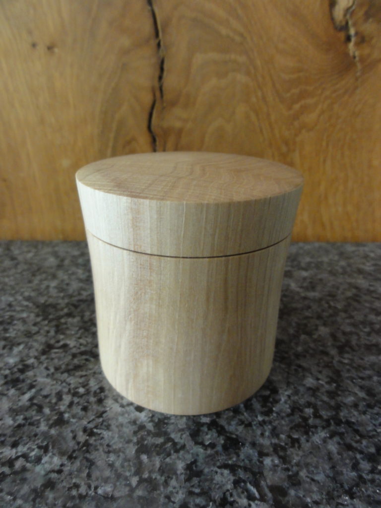 Kleine gedrechselte Dose aus Weißbuche mit Schraubdeckel, geschliffen und geölt mit Danish Oil.