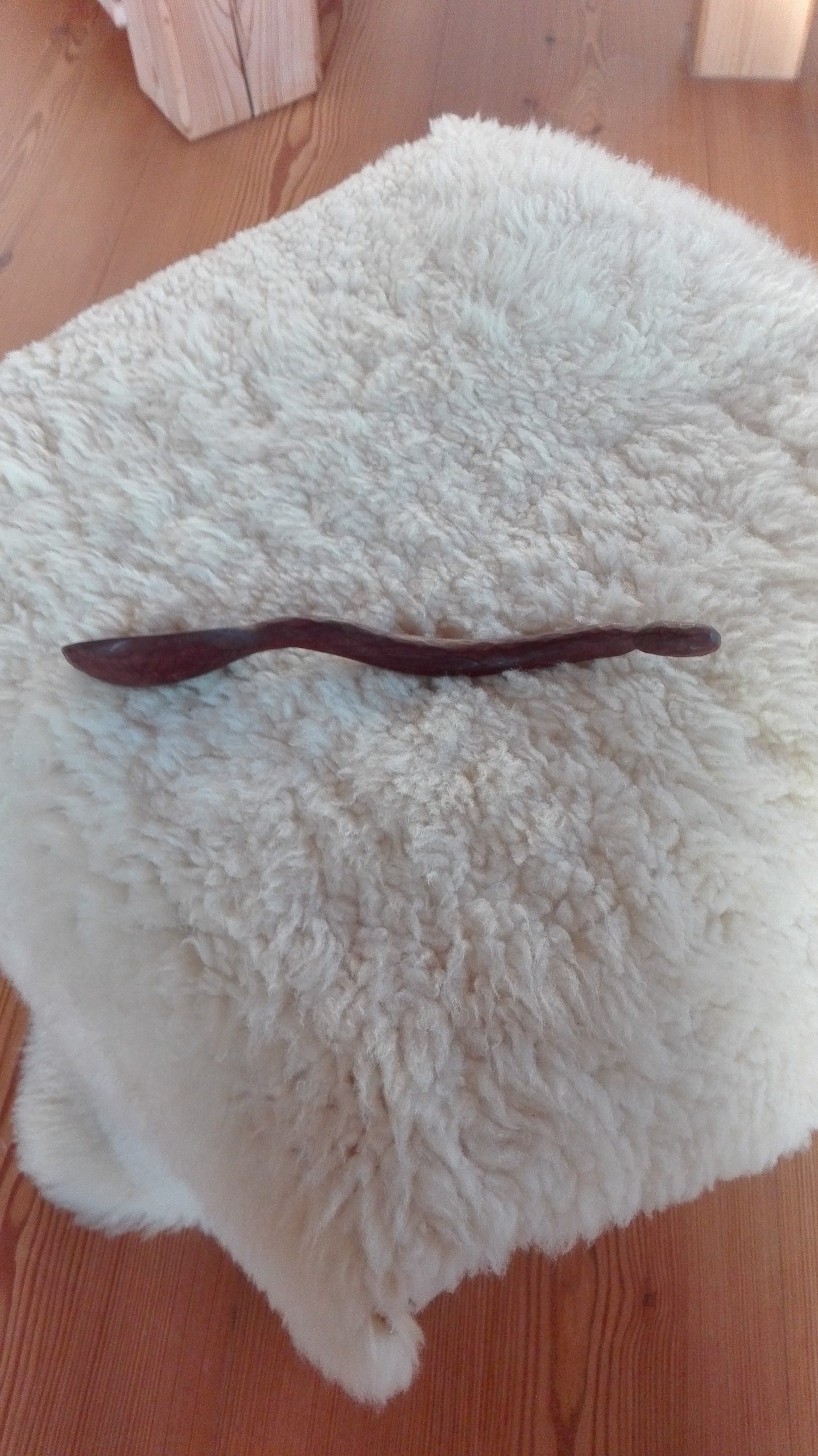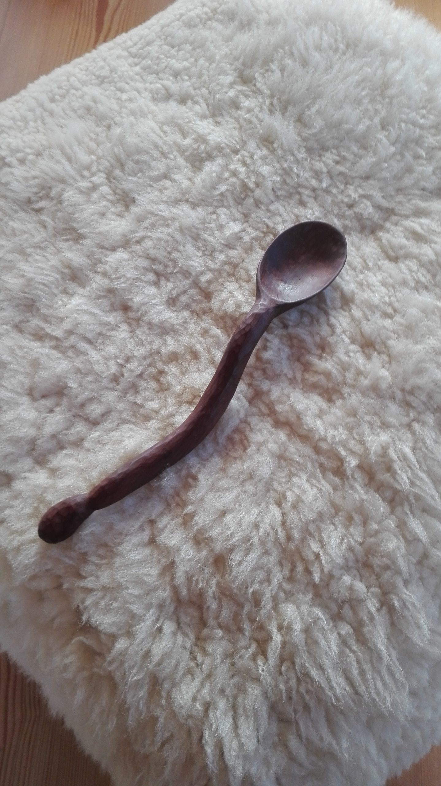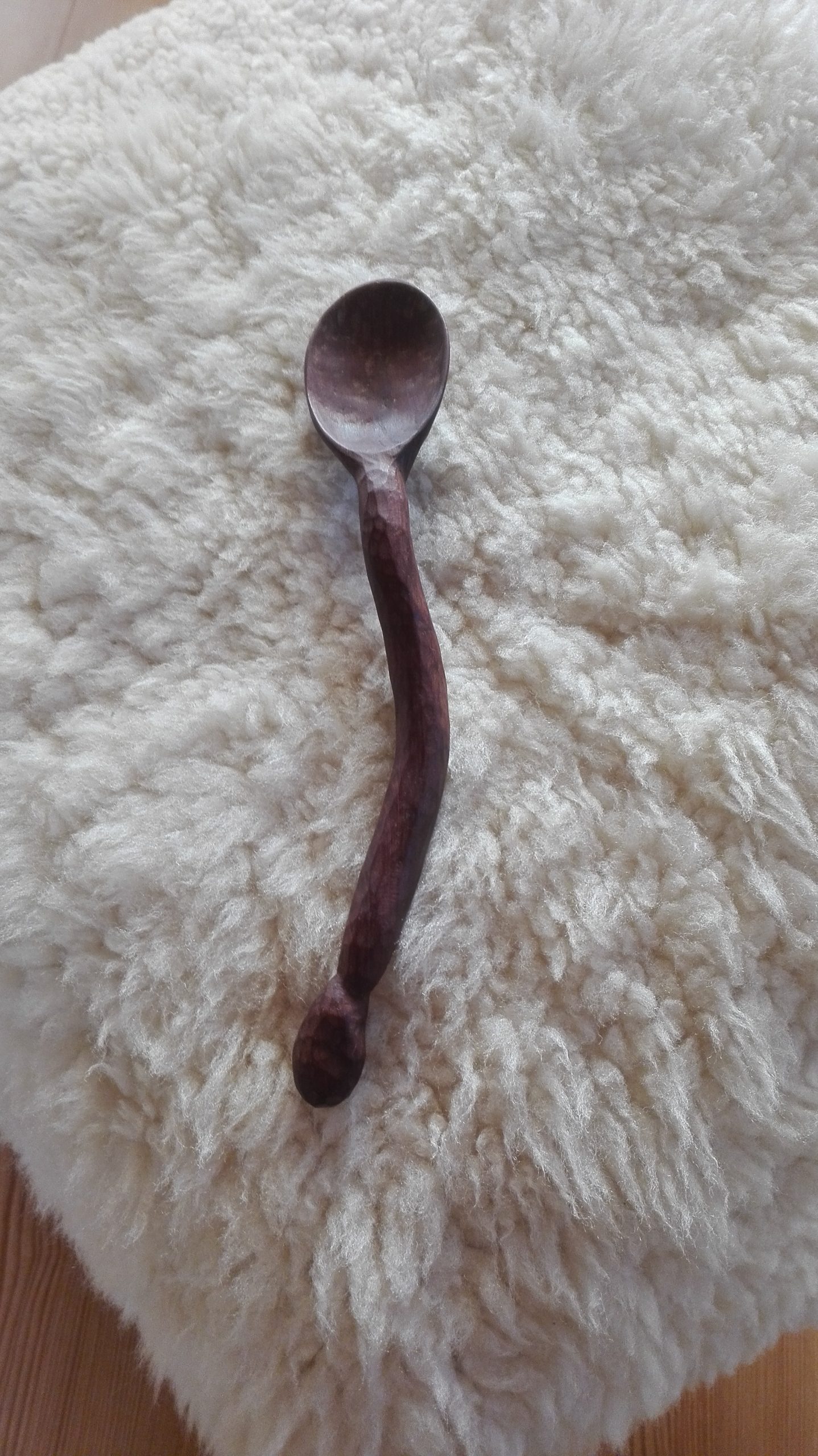 Krummer Löffel aus einem Zwetschgenkantl. Keine Maschinen benutzt. Nur mit einem einfachen Taschenmesser gefertigt. Entstanden aus Langeweile.