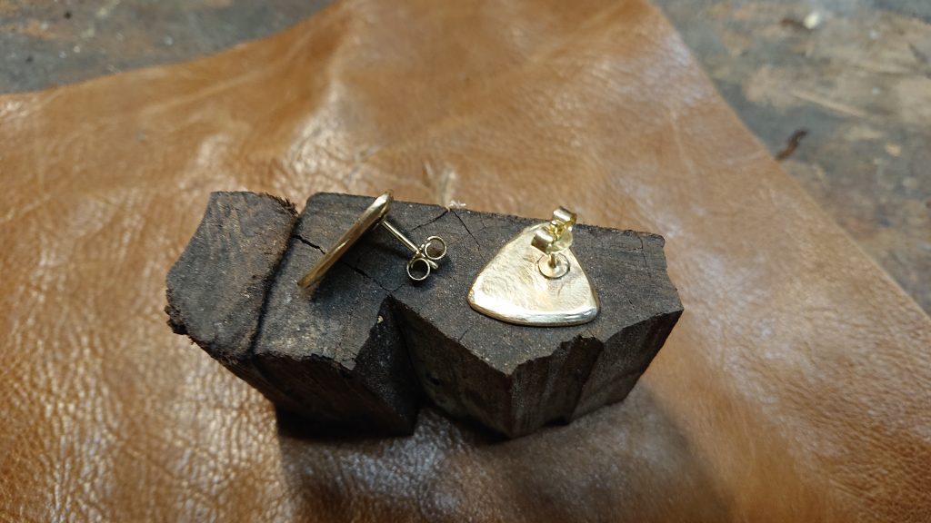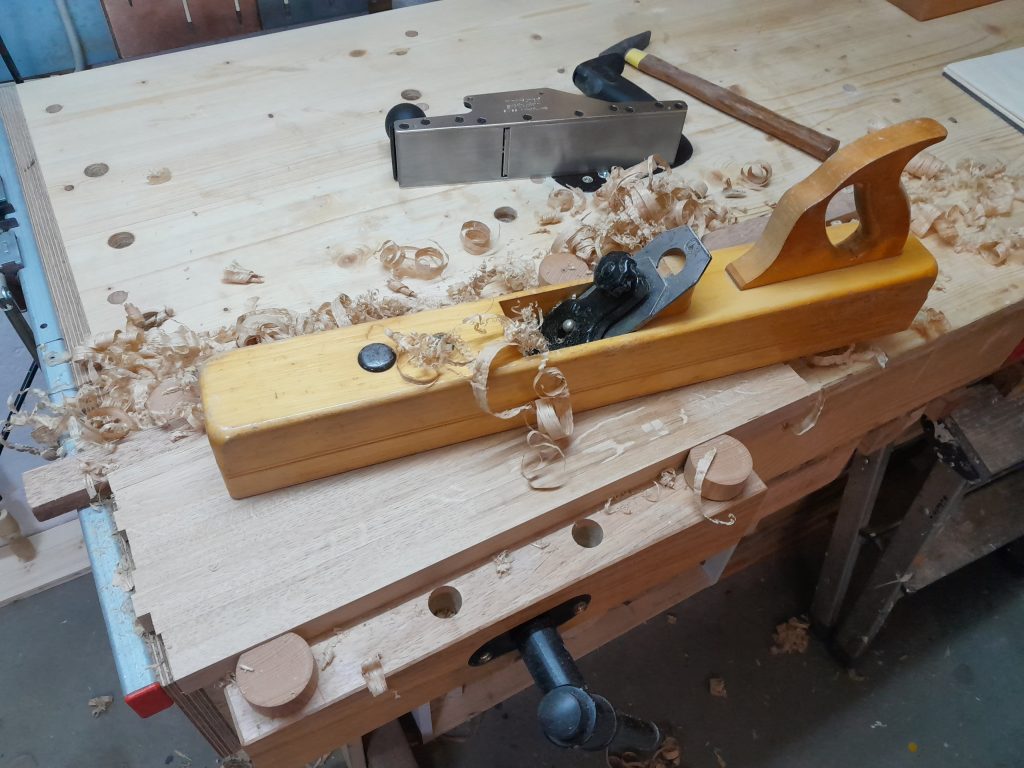 Möchte man beim Einspannen von weichen Hölzern Druckstellen vermeiden, so sollten Bankhaken aus Holz verwendet werden. Diese Bankhaken sind auf der Drechselbank aus Buchenholz entstanden; die abgeflachten Stellen wurden auf dem Tellerschleifer ausgearbeitet.
