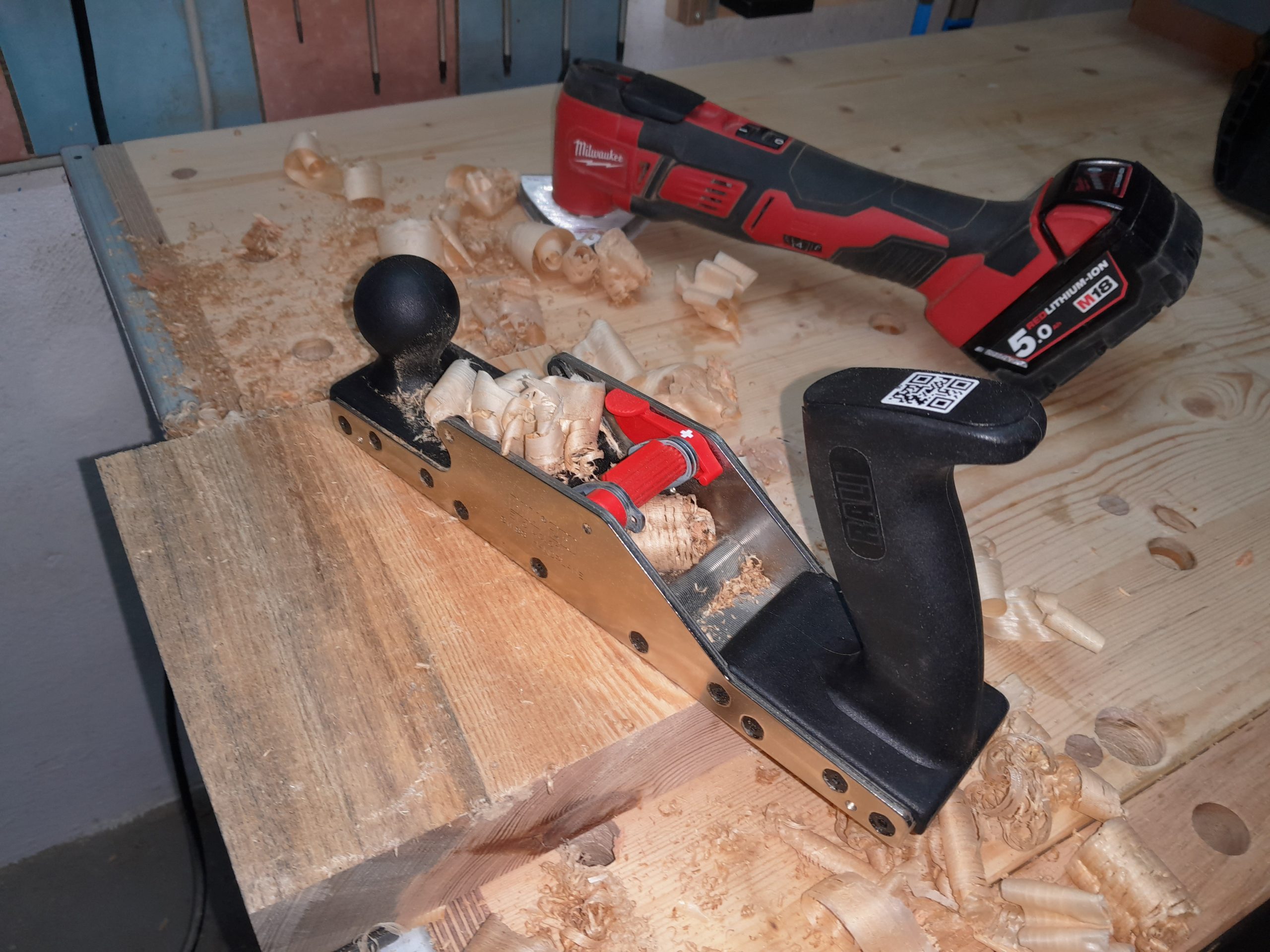 Die Zimmerpflanze, welche auf meinem Nussbaumschränkchen steht, hat vom örtlichen Töpfer einen neuen Übertopf bekommen. Da ich der Wasserdichtheit des Übertopfes nicht 100%-ig getraut habe und Wasserflecken auf meinem Schränkchen vermeiden wollte, habe ich aus Resten des Schrankbaus einen Untersetzer gefertigt. Der Abschnitt wurde händisch ausgehobelt und anschließend wurde mit Fräszirkel und Oberfräse die Form ausgefräst. In der Mitte wurden drei Erhöhungen stehen gelassen, auf welchen der Topf steht. Die Oberflächenbehandlung erfolgte zum Anfeuern der Maserung mit Hartwachsöl. Die Innenseite wurde dann nochmals mit einer dicken Schicht weiches Wachs behandelt, davon stammen auch die weißen Rückstände, welche jedoch durch den Topf verdeckt werden.