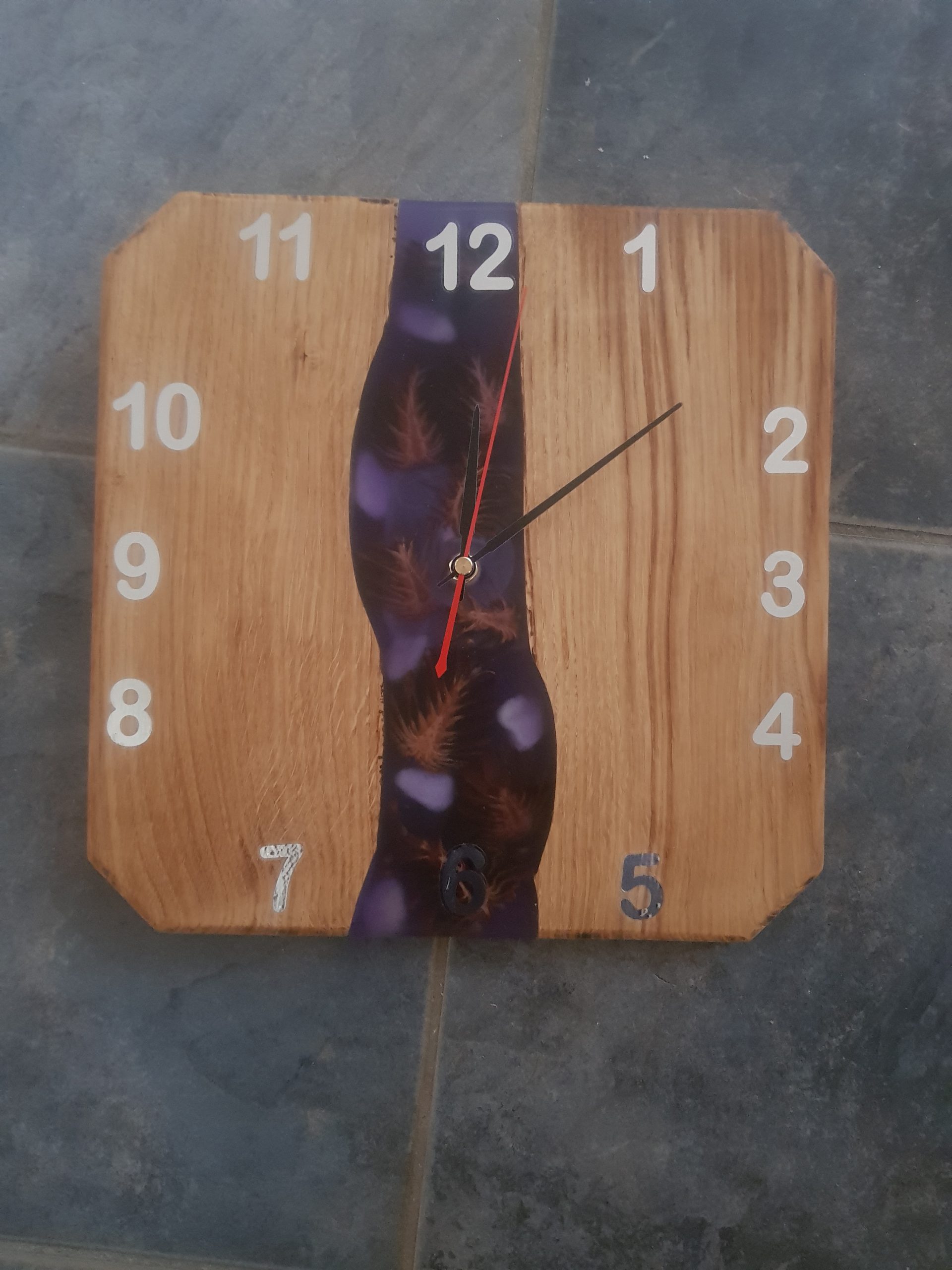 Wanduhr aus Eiche und Epoxidharz