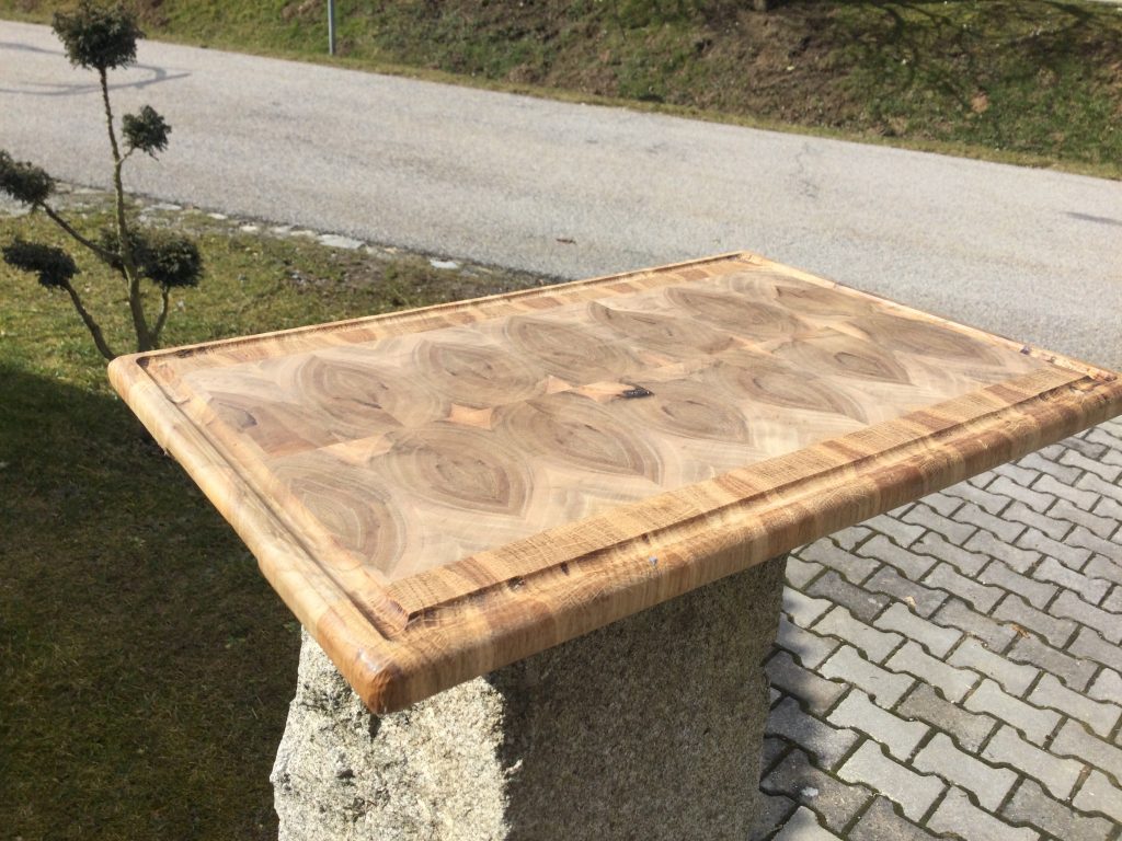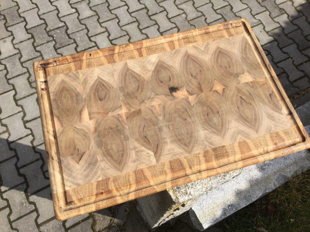 Kleine Holzbox mit allseitig umlaufender Maserung. Die Gehrungen wurden mit einer Kurzanleitung angefertigt.