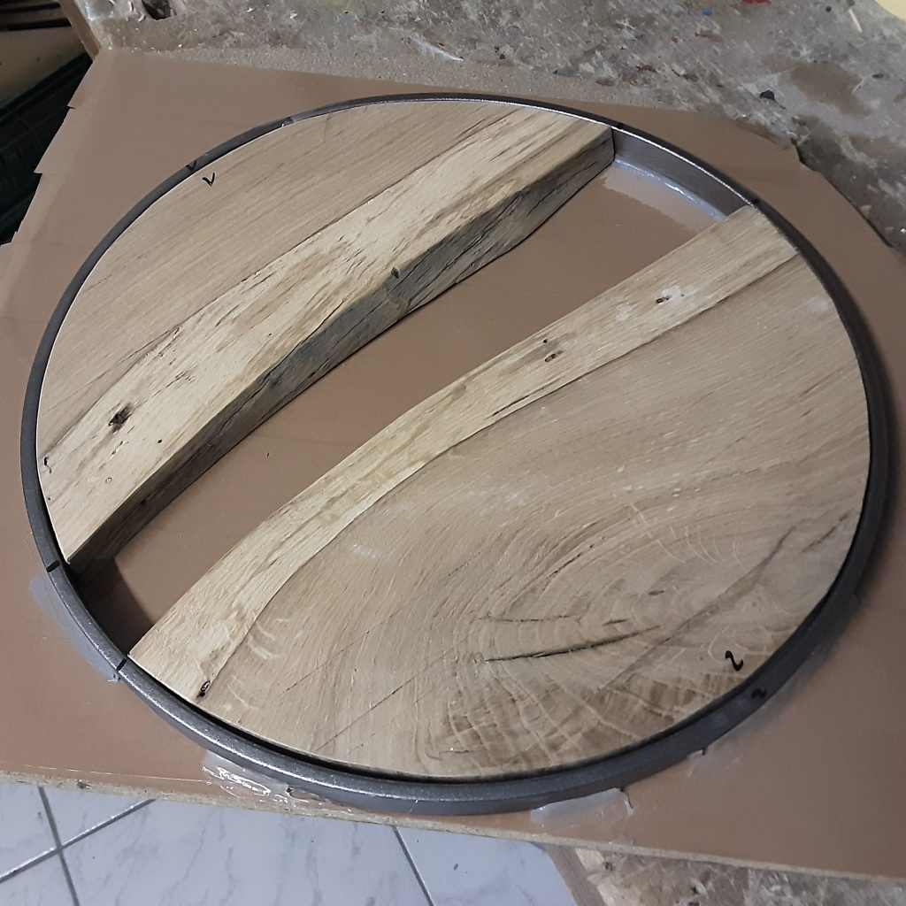 Der „Lampenschirm“ dieser Lampe ist der Ast einer Korkeiche, bei dem das Holz bereits verrottet war und nur noch das Kork übrig geblieben ist. Als Sockelmaterial wurde stilecht Eichenholz verwendet, aus welchem mittels Fräszirkel und Oberfräse ein Kreis ausgefräst wurde. Als Leuchtmittel wurde eine LED-Filamentlampe verwendet. Die Oberflächenbehandlung des Sockels erfolgte mit Hartwachsöl.