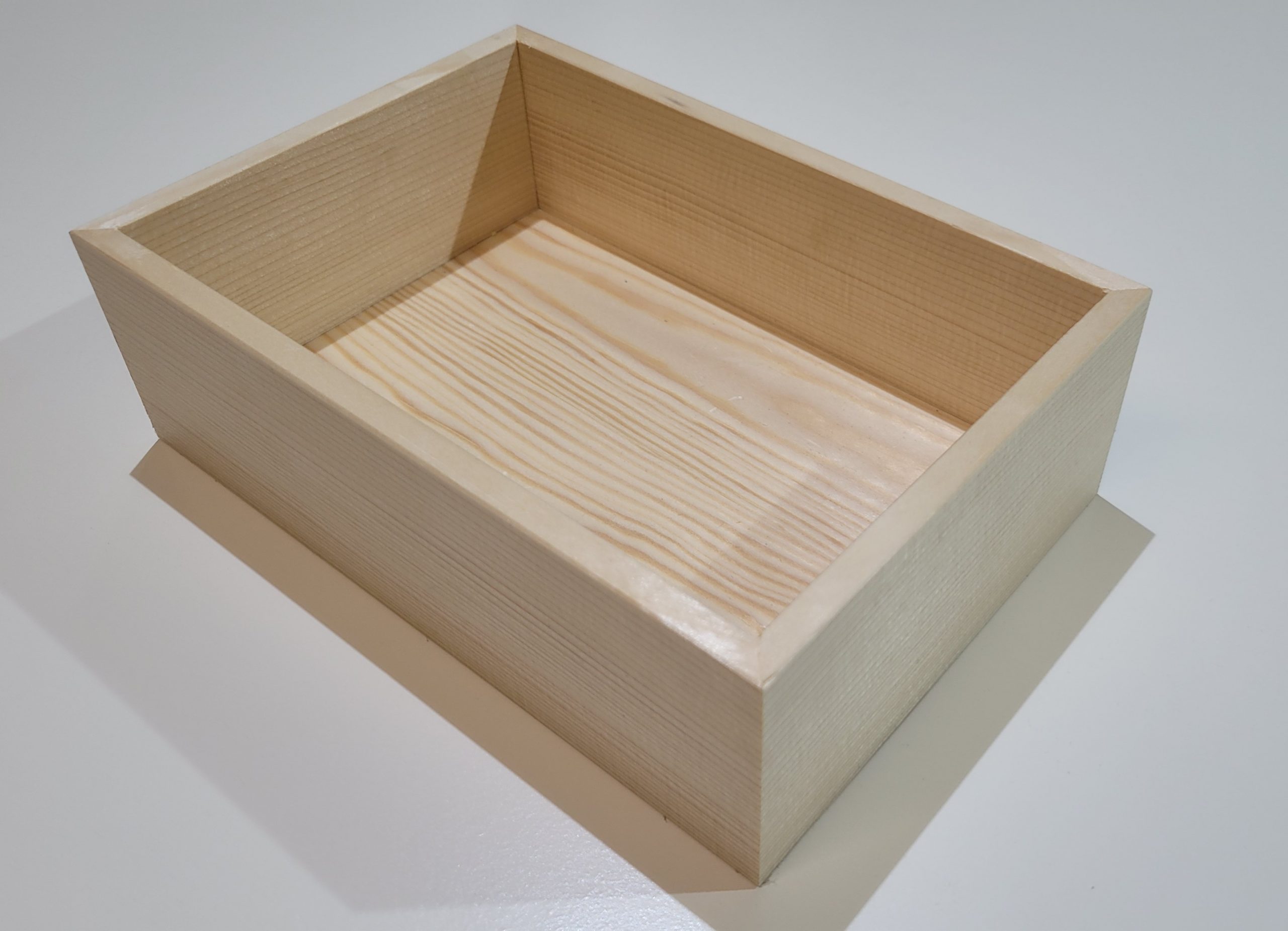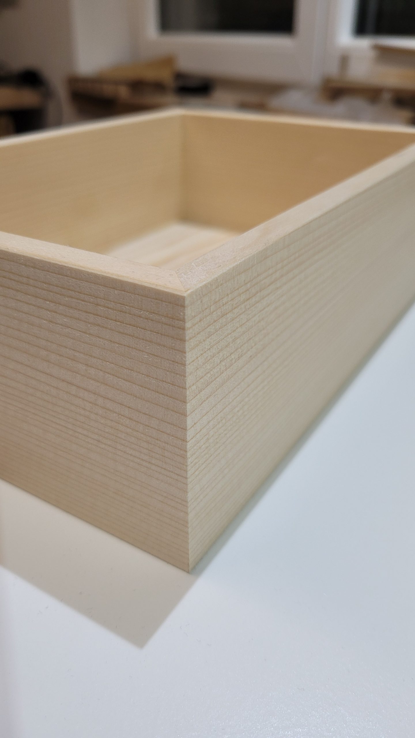 Kleine Holzbox mit allseitig umlaufender Maserung. Die Gehrungen wurden mit einer Kurzanleitung angefertigt.
