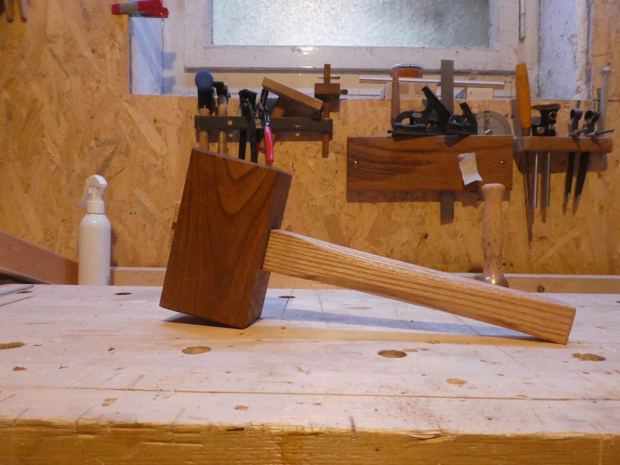 Ein weiteres Projekt aus Roy Underhill „The Woodwright’s Shop“, nach der Vorlage des „Big Ash Mallet“ gefertigt. Hier jedoch mit einem Kopf aus Nuss. Ein wirklich schönes Werkzeug, dass mittlerweile meinen alten Messingklüpfel komplett ersetzt hat. Das Nussholz ist einer der Rohlinge, die bei DICTUM erworben werden können. Diese haben perfekte Hammerkopfgröße.
