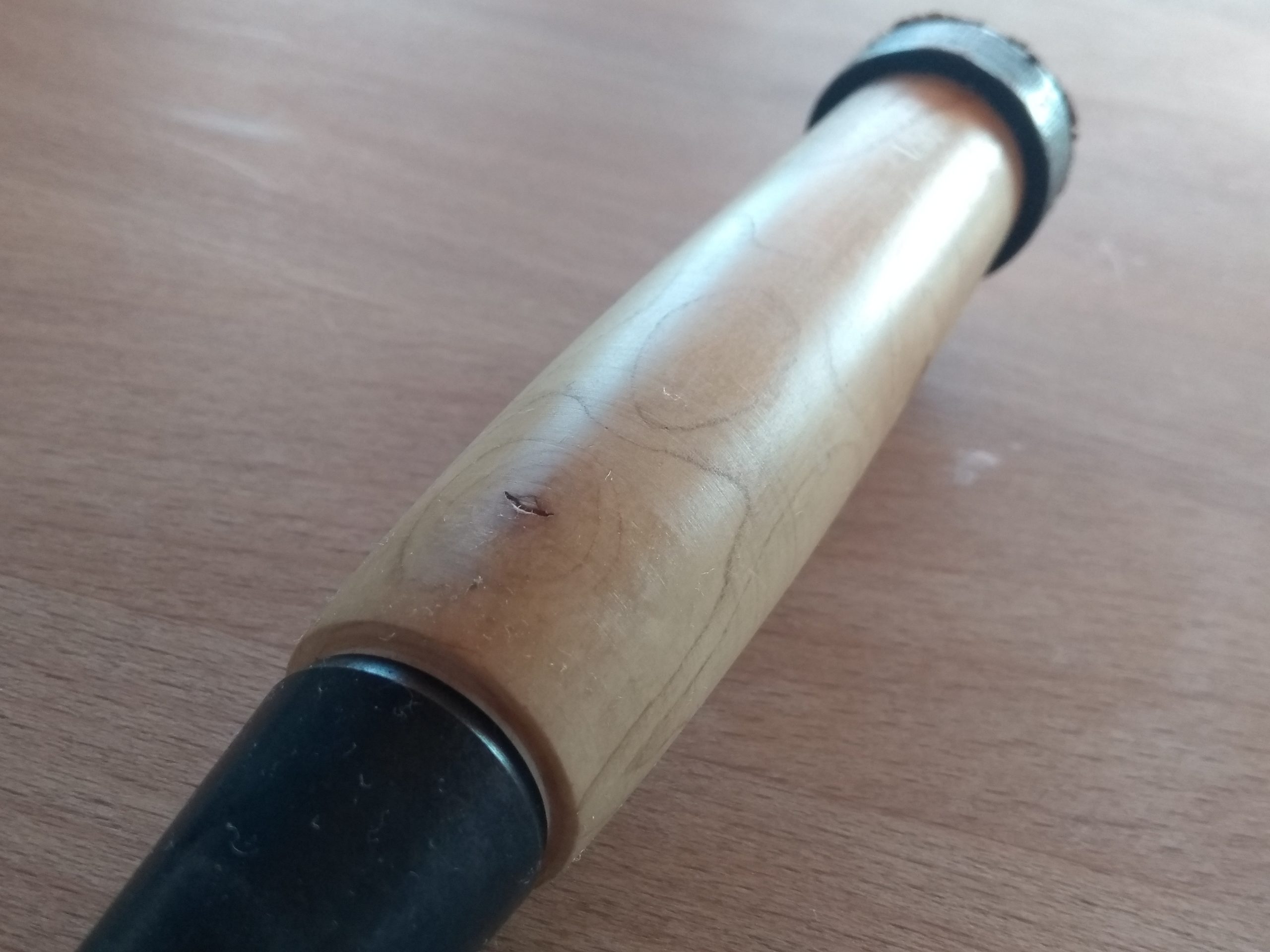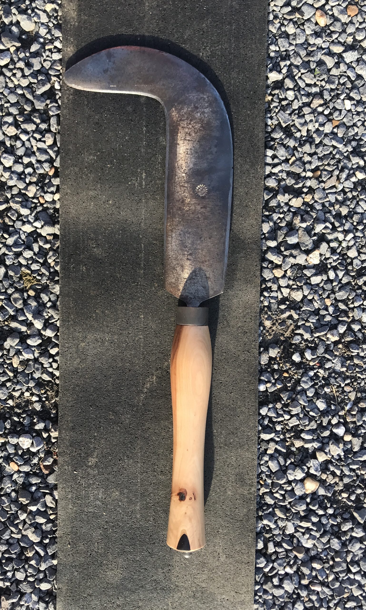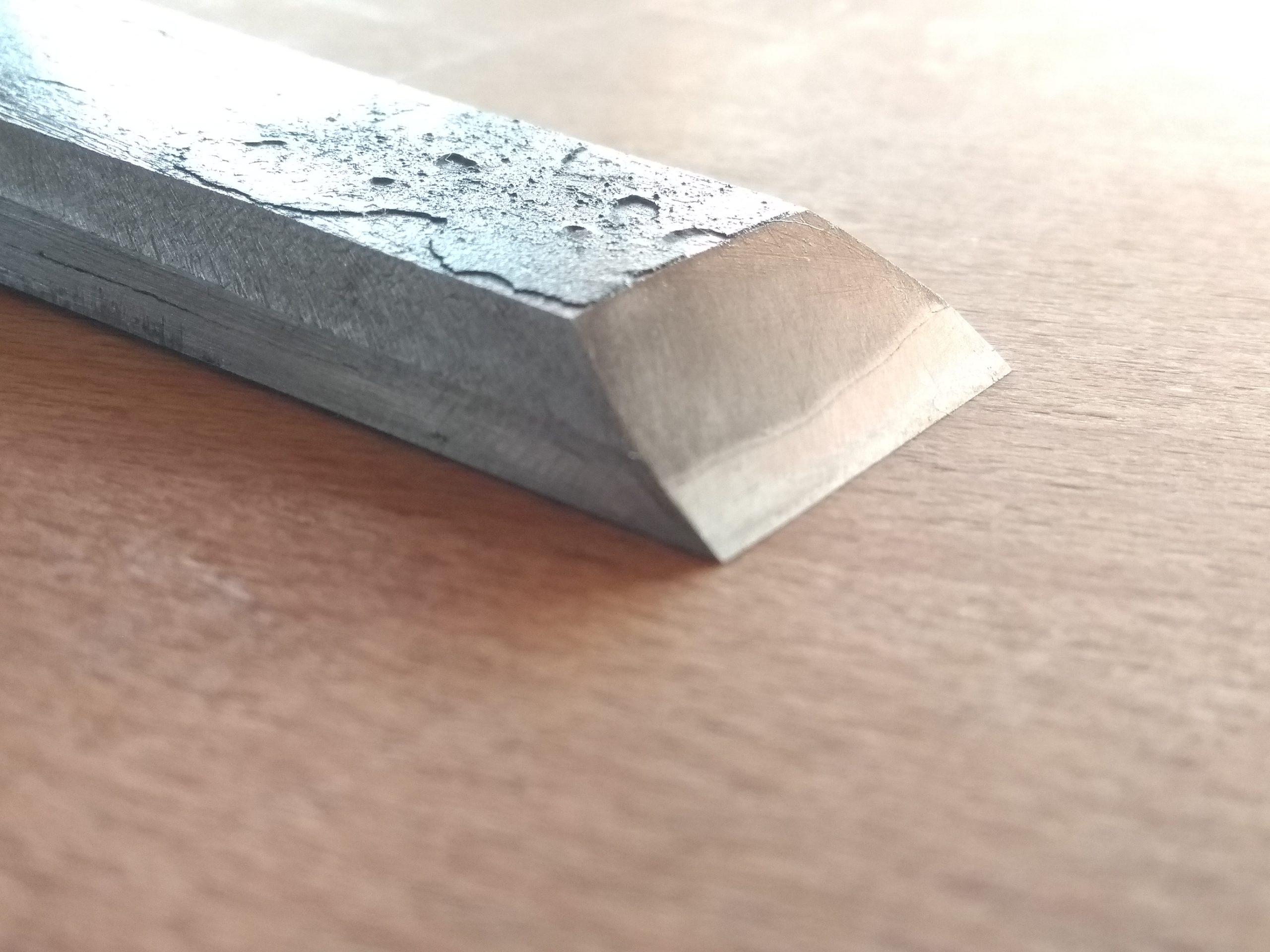 Seit langem bin ich von japanischen Stemmeisen begeistert, nun habe ich mich selbst am Schmieden versucht. Entstanden ist eine Mischung aus japanischem und europäischem Stil. Die Schneidlage besteht C100 Stahl, feuerverschweißt auf Baustahl. Die Spiegelseite ist flach, ohne Ura. Anschließend in Öl gehärtet und im Backofen wärmebehandelt. Das Heft habe ich aus Flieder gedrechselt, anschließend geölt und gewachst. Zwinge und Schlagring entsprechen dem japanischen Vorbild.