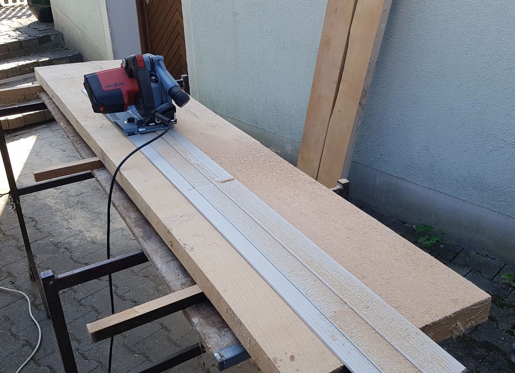 Als Werkzeuge dienten u.a. eine Maffell Tauchsäge, verschiedene Handhobel, Lochbeitel und normale Stemmeisen, Grundhobel, Streichmaße, Schmiegen und Starret Kombiwinkel.