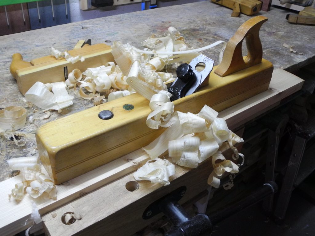 Nachdem ich die Griffe mit selbst angesetzter Schellacklösung poliert habe, konnte der Hobel wieder zusammengesetzt, gegen Rost konserviert und eingestellt werden. Das Ergebnis ist nicht nur eine Freude zum Ansehen, sondern vor allem ein wieder gut funktionierendes Werkzeug, was vorher aufgrund des Zustands keinen Nutzen mehr hatte.