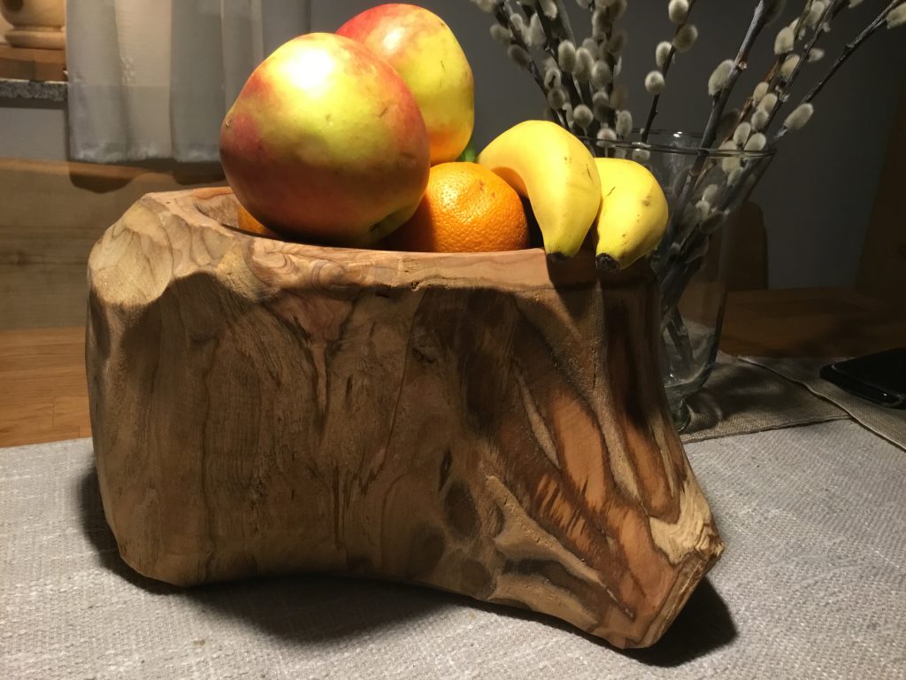 Die Rinde wurde mit dem Turbo Plane von Arbotec entfernt, anschließend wurde in den Kirschstamm eine Rundung gedrechselt.Zum Schluss wurde die Oberfläche mit Danish Oil behandelt.